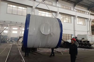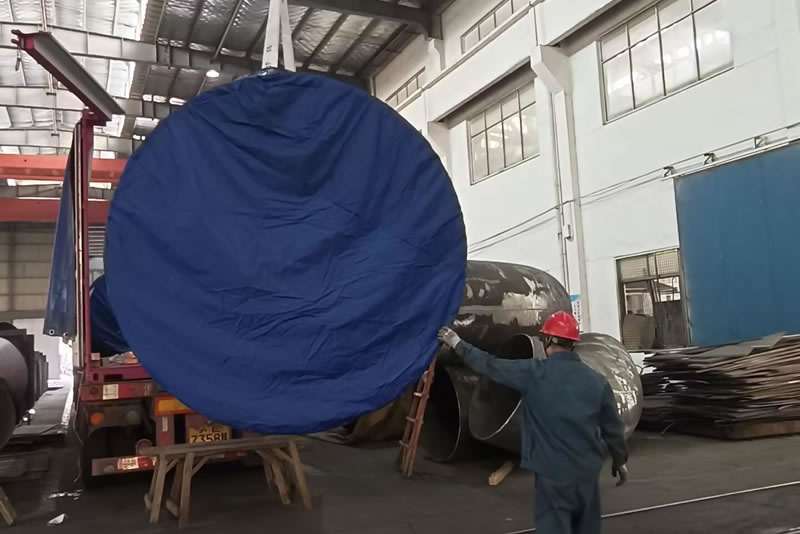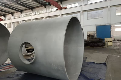 Эти бесшовные штампованные равнопроходные и переходные тройники сверхкрупных размеров были изготовлены нашей компанией в полном соответствии с индивидуальными чертежами и техническими требованиями клиента, а также в соответствии с утвержденным ПИИ (Планом инспекций и испытаний) под надзором назначенного ИТC (Инспектора третьей стороны). В качестве базового материала тройника использовалась нержавеющая сталь марки SS321H, размеры тройника: DN2100 и DN2250 с толщиной стенок 22 мм, 26 мм, 28 мм и 45 мм. Максимальная толщина исходной листовой заготовки составляла 52 мм, что крайне важно для столь габаритных изделий.